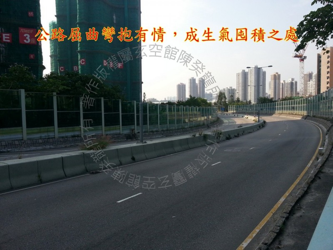 西面兌方見十八鄉路與大棠道為「四水歸田」,如財星到宮則視為財氣通門戶之兆。惜蝶翠峰外形成「角煞」,宮位被沖射,氣場受沖過猶,對宮內飛星必彰顯其弊。尤以尚悅低層及中層住戶影響為甚。