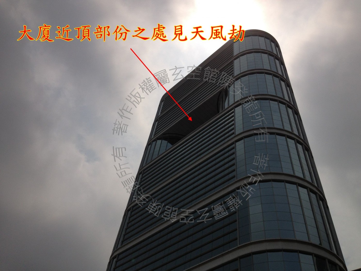 大廈朱雀方明堂較闊,則利於納氣。此局八運見西北方見正城門,此方見低虚巒頭又見四水歸田,因此理氣能聚積此方催旺財氣。大廈西南方為八運丁星之位,不但見高樓又遠收歌賦山和奇力山山脈,必能匯聚人才。大廈玄武方為八運財星之位,為當運入囚,後方惜被香港電燈電力站緊貼,因此化囚之力大減,電力站後方雖見玉帶環腰之吉象,但其後見大型地盤動土,此方星盤理氣因而被摧毁,令財運有所影響。大廈建築外形近頂部份之處,見風水學上之天風劫,對週邊單位的理氣盤必有所影響。
