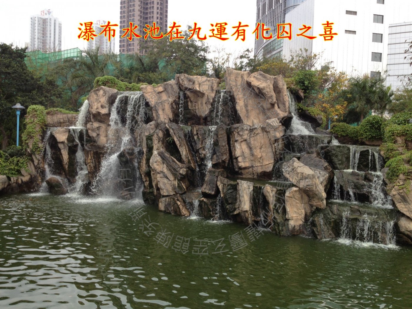 大廈玄武方見荃灣公園瀑布水池,湊巧見七、九之飛星組合,不但減弱回祿之災的傷害,在九運更有化囚之喜。大廈西方底部為巴士總站,站內空氣閉塞,長年累月產生瘴污之氣,且理氣星盤見二、五,再者此方亦見紅色頂蓋的行人路,在風水學上名為龍脊煞,對宅內人健康狀況必需加以提防。