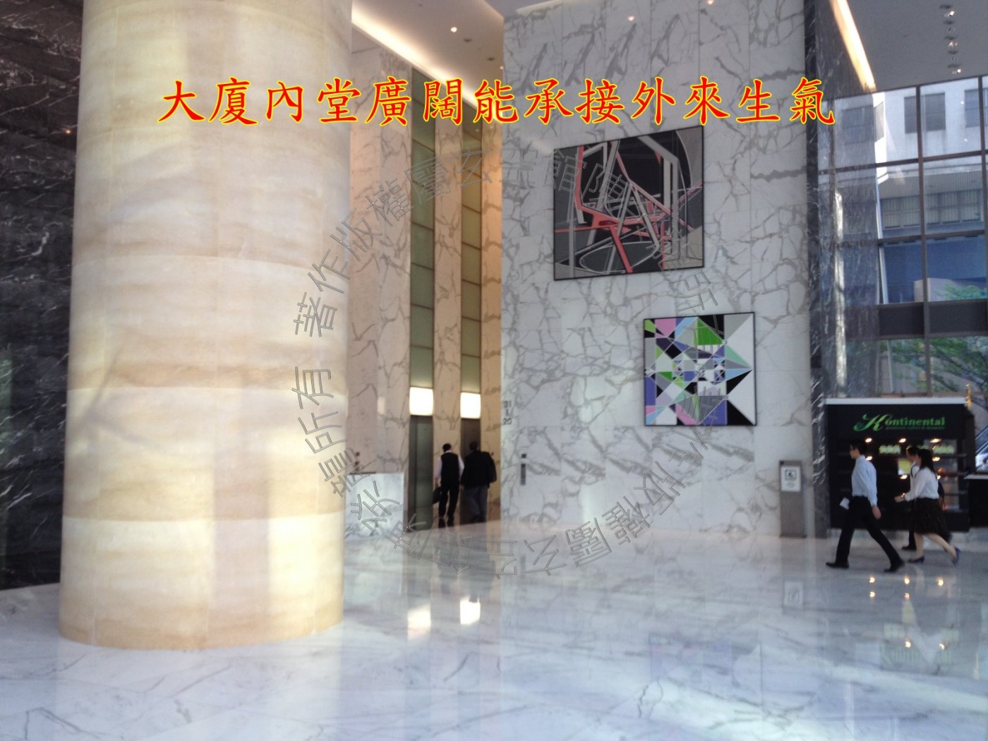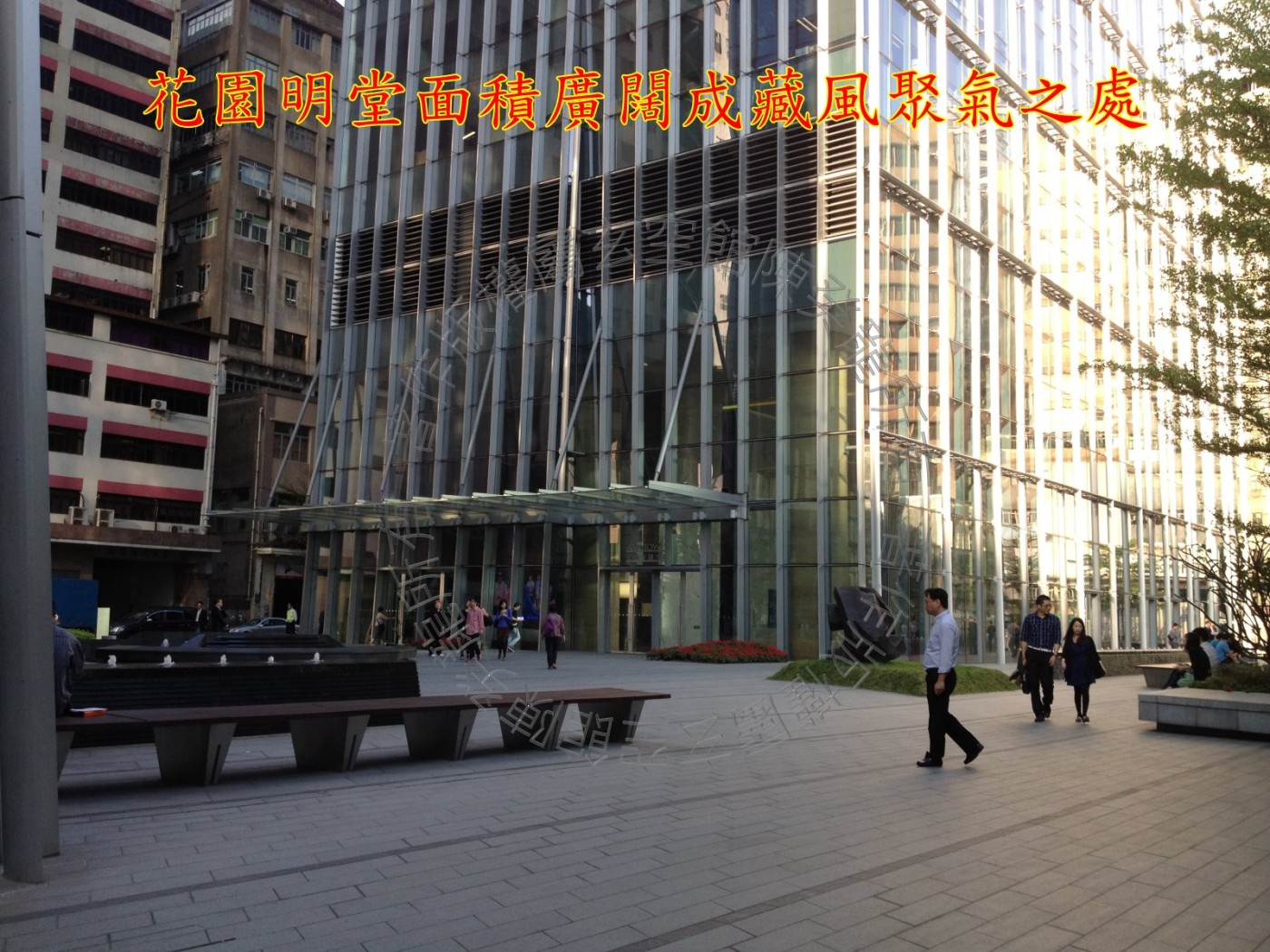 大廈建有花園水池露天廣場,門向與屋向同向,門前朱雀方為當令財星之位,惜此方位不能盡收水池旺氣為美中不足。大廈花園西面叠見一個圓形水池及長方形水池,且理氣星盤排龍得九、三,為木火通明之象,必應宅內人多為聰明之士,再者未來旺星亦被催動,財氣因而漸旺。