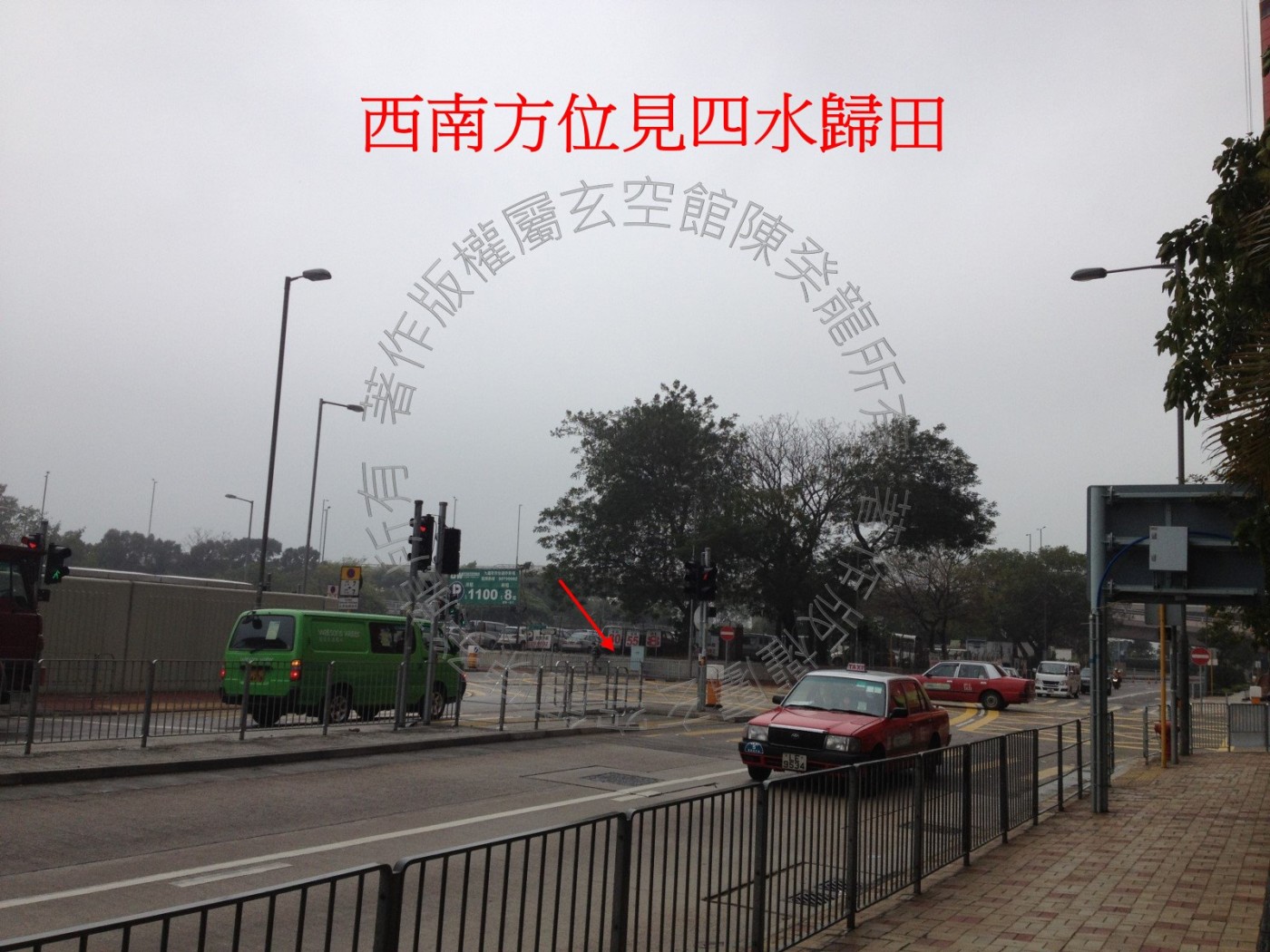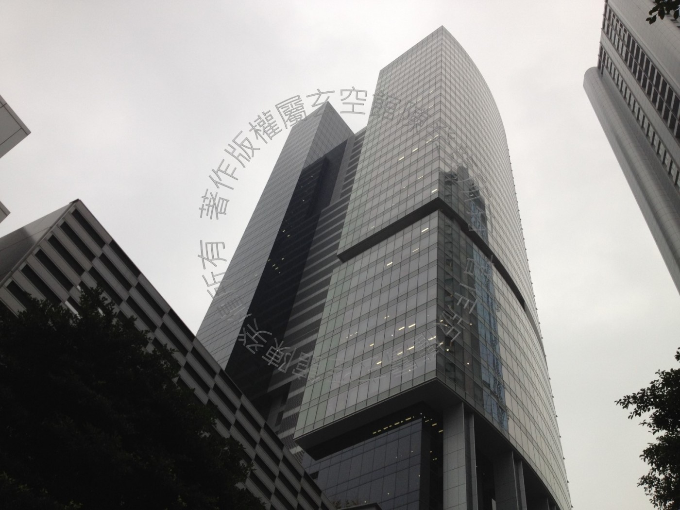大廈西面見企業廣場三期的形巒,形狀似古時官帽,湊巧理氣星盤為六、一飛星組合 ,主升職掌權之象。大廈西南方位叠見三叉水口與四水歸田,飛星組合為一、六,主貴人多遇,名揚天下之兆。回顧朱雀方,近方外巒見方形貨倉,在理氣盤上形成形煞,對吸納旺氣有所影響。