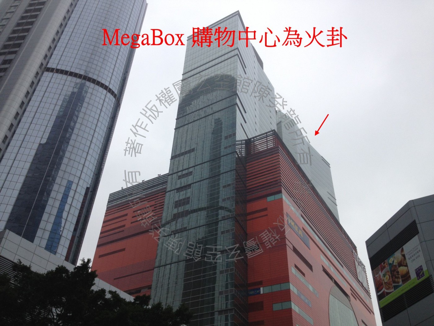 MegaBox 購物中心座落於Manhattan Place的西面,全幢大部份為紅色,在對岸亦能清晰可見,非常搶眼奪目。在玄學形巒上為火數之卦,惜巒理相背,客星加臨必成形煞,幸好MegaBox在企業廣場三期之後,影響較少。另一方面,大廈南方低層用戶,見馬路中間的招牌直沖成煞,如流年二黑或五黃加臨,必彰顯其破壞力。