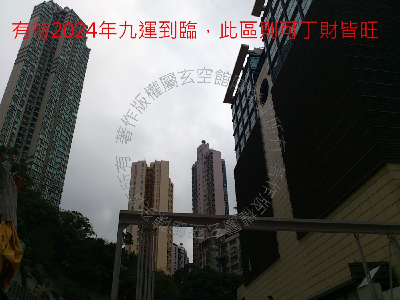 鄰近新舊樓交替,排列工整,四周不見真水,惟獨此大廈有戶外泳池,如令星到臨此方,財運可催發。總體有待2024年九運到臨,零正神得位,此區則可丁財皆旺,以大廈立線得吉者為優勝。