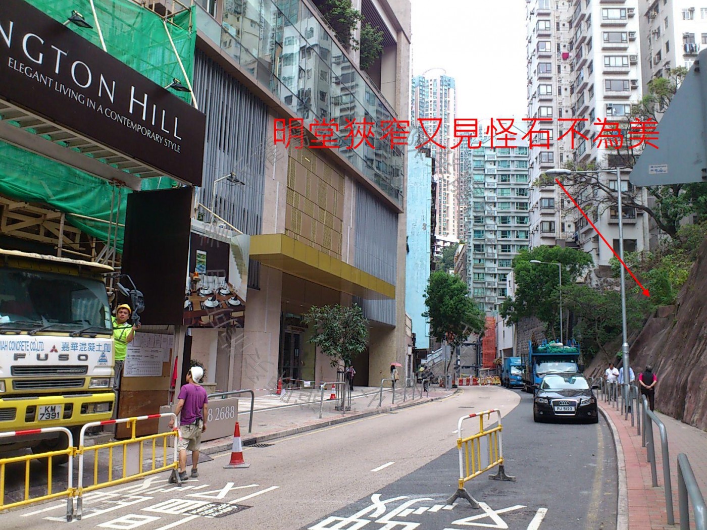 屋苑之入口位於南離方,後天之形局上得坐空朝滿之勢,假若大廈立線得理氣星盤之「上山下水」局來呼應,要山見山,要水見水,此「倒騎龍局」亦可補不足。大廈朱雀前方見護土牆,山坡後見高聳的翰林軒,明堂狹窄又見怪石不為美,幸翰林軒兩座大廈之間距離寬廣,不成屏風;玄武後方落虛又逢反弓車路虛水及單程行車氣沖,靠山不得力,主事事要親力親為,健康運亦略遜;東震方見磷岩怪石及一雙巨型渠管,此等構成風水上之煞,宅內人易患皮膚疾;東北艮方及西北乾方為四水歸田之位,男住客會較奔波勞碌,財來自有方,惟乾方之四水只為去水,錢賺得來亦去得快,儲存能力不強;大廈四周交通繁忙嘈雜,低層單位住客情緒會受「聲煞」影響而易感煩躁不安;高層單位住客,則要留意窗外,如東南巽方見浦飛路之反弓路,慎防「鐮刀煞」血光之險。