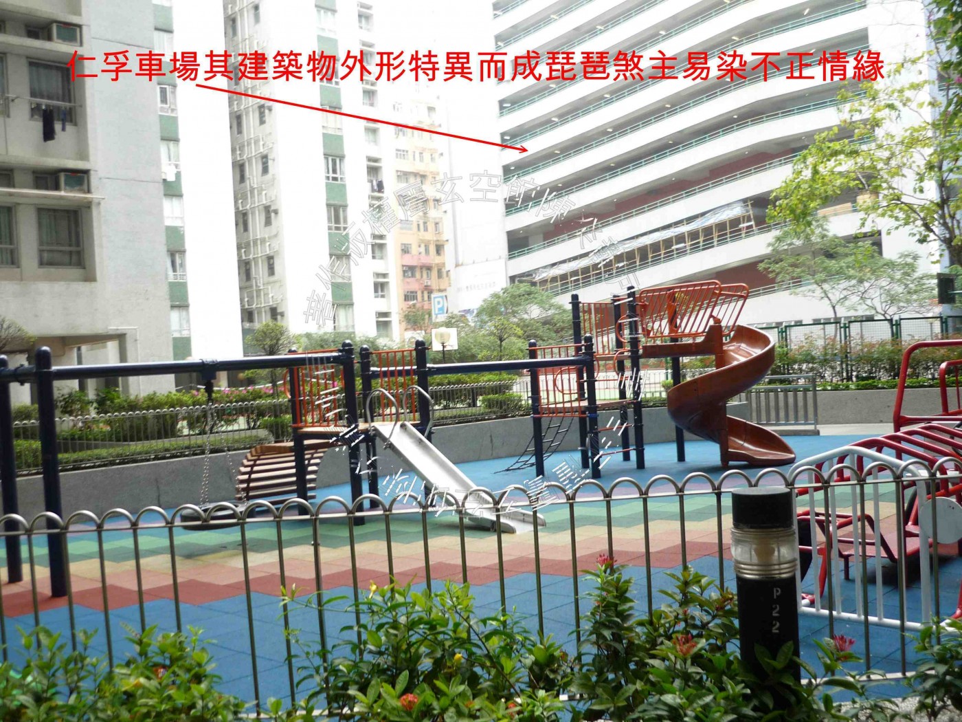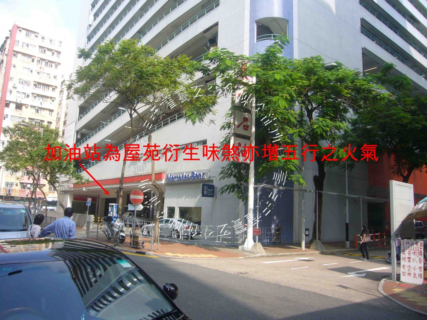 第一座與第二座、第二座與第三座間,均見天斬煞。孰吉孰凶,需察宮位卦象而定。惟忌山星受損,恐影響人丁健康。屋苑西面兌方及東北艮方均有四水歸田動象,若得財星八白加臨,當有催財之妙。另有加油站為屋苑衍生味煞;亦增五行之火氣。西北乾方為仁孚車場,其建築物外形特異而成琵琶煞,主易染不正情緣。其對鄰樓宇平台有大型抽風機氣口,衍生瘴污之氣,受其影響者需注意家人健康。