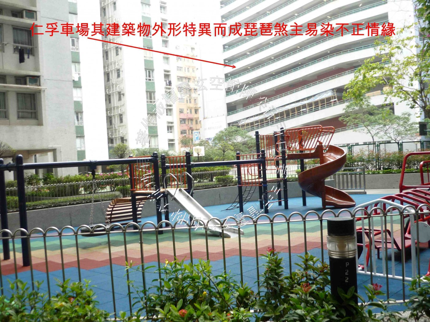 第二座與第六座間見天斬煞。孰吉孰凶,仍需察宮位卦氣而定。惟恐山星受損,影響人丁健康。屋苑西面兌方有四水歸田動象,當有助催動八白財星。南面離宮見橋躉成煞,另行人天橋沖射第七座後方玄武之地。東面震方見地下停車場出入口成開口虎。北面坎方有加油站為屋苑衍生味煞,亦增五行之火氣。而仁孚車場之特異建築外形成琵琶煞,需防不正情緣。
