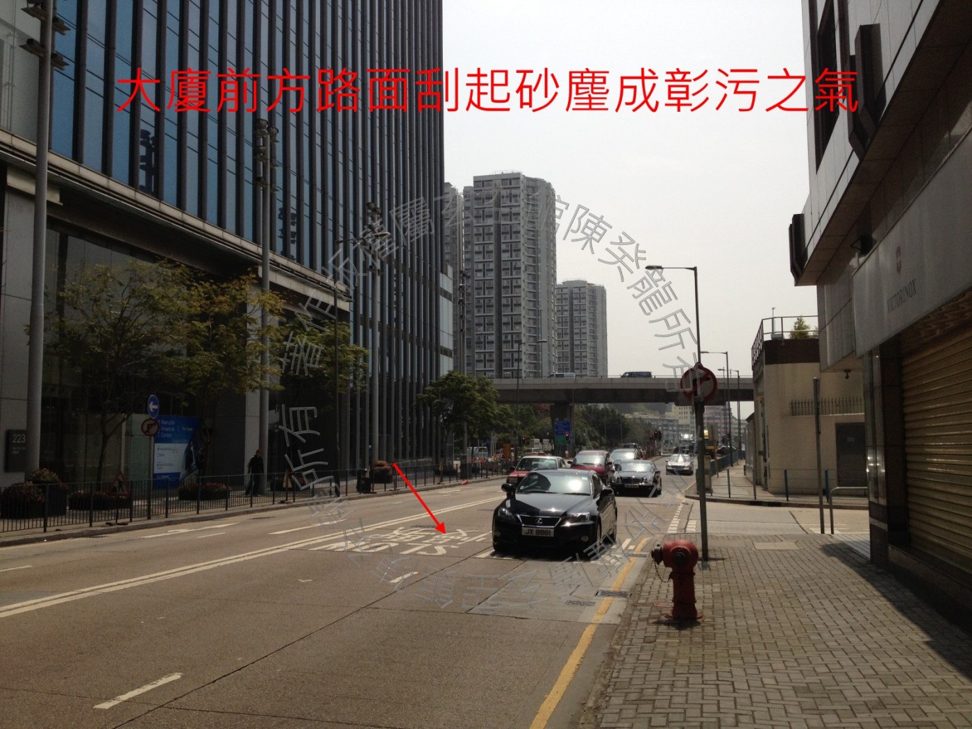 大廈近方大門靠近馬路,交通非常繁忙亦見大型車輛不時擦身而過,且刮起砂麈,大廈外牆亦被形成一層灰膜,此彰污之氣對前方納氣來說必有影響。大廈後方見酒店角煞沖射左右兩方,A座東方理氣盤排得三、九受此形煞,反為木火通明,然B座北方理氣盤排得一、七受此形煞,則上司對下屬工作態度需多加注意。冀入九運後,水裏排龍到海,財運必能大放異彩。