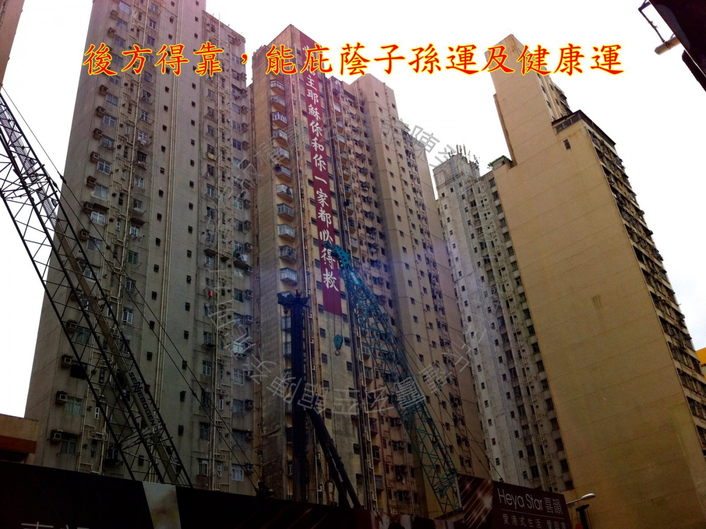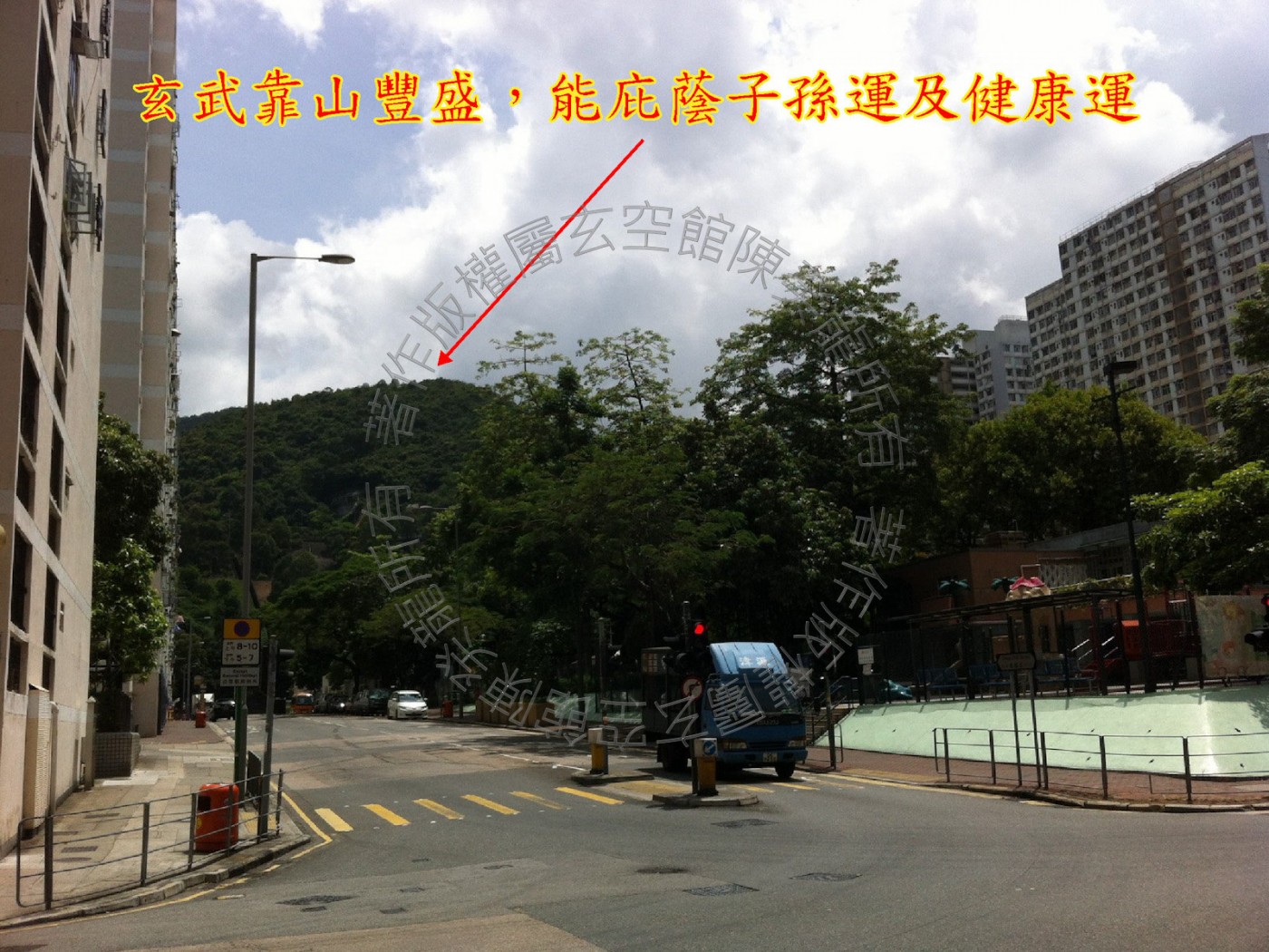 東北面乾方有一護老中心,護老中心在風水學上帶有悔咎之氣,宅內人易生負面情緒及影響健康運。北面坎方及東北艮方除尖山落脈外更有大廈緊貼,後方得靠,有力豐盛,能庇蔭子孫運及健康運。