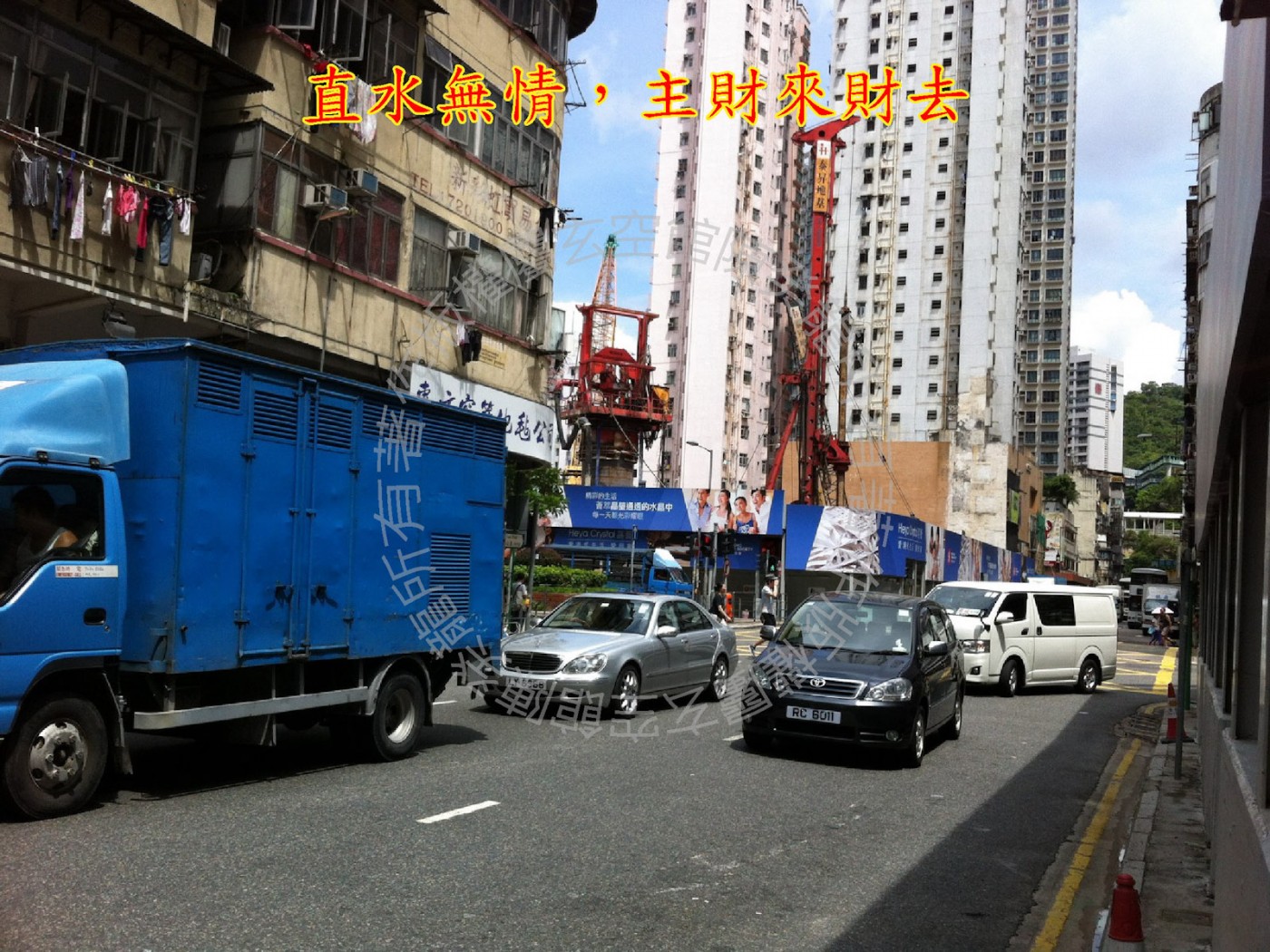 東面震方是順寧道交會長發街,車輛住來稀疏,帶動生氣力不強。東南巽方是青山道交會長發街,此路為去水,主財來財去,儲財力不強。南面離方見護老院及天台天線和防盜網,刺面煞與悔咎之氣在風水學上皆不喜,不可言吉。
