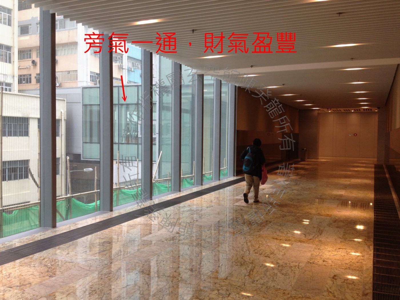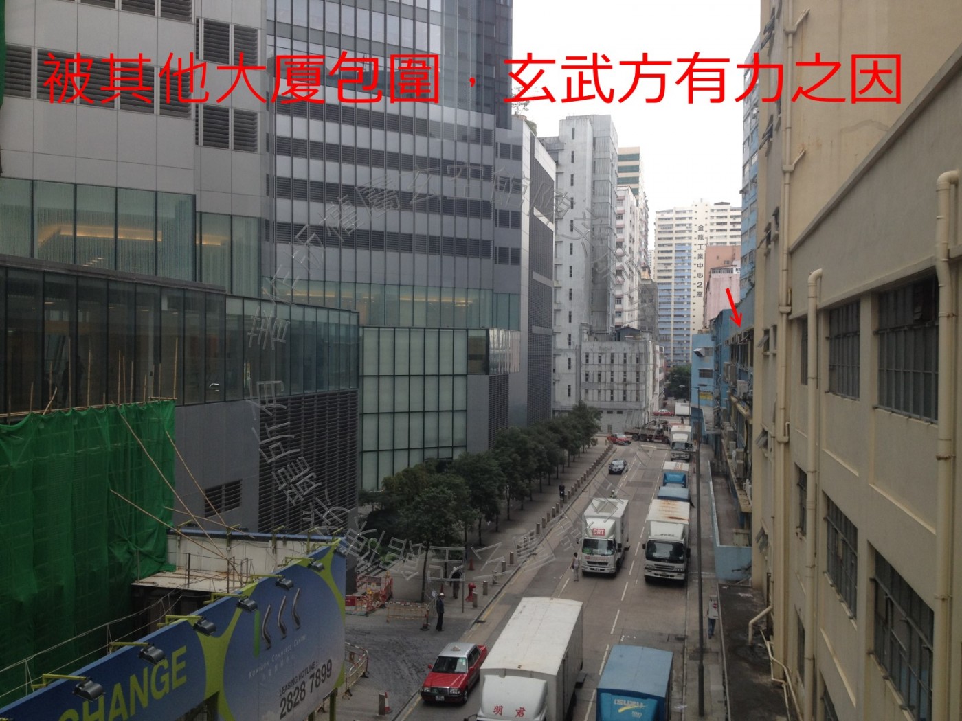 大廈北面坎方建橋直達葵興地鐵站,此處帶動生氣由大廈外圍西北乾宮到大廈內坎北之位,此謂旁氣一通,必定財氣滿盈。大廈離方見三叉水口,理氣盤見一、六同宮本能揚名海外,惜此方位亦見兩個大型水塔,水塔全年整日所產生的彰污之氣,令此宮位聚氣成煞,星盤宮位反被所害。第一座與第二座相隔空間,由兩座角位收窄而成,非常狹隘的空隙所形成的天斬煞,理氣盤亦見二、五同宮,所謂二、五同宮必傷主,因此緊貼天斬煞的單位,相比其他單位整體運勢則較遜。